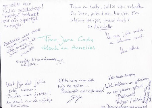 AFSCHEIDSKAART VAN SAILING KIDS VRIJWILLIGERS